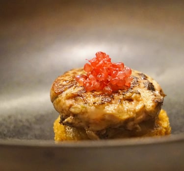 Foie Gras de canard poêlé, oignon confit, pain d’épices et citron caviar