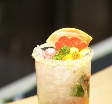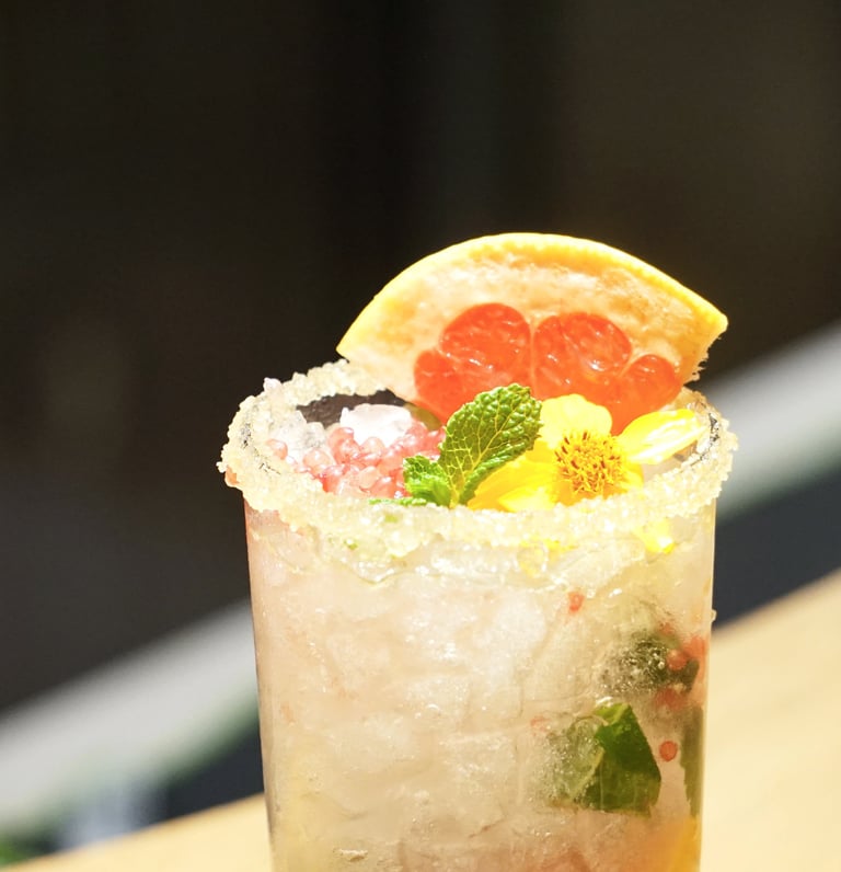 Mojito au pamplemousse, menthe et citron caviar rouge