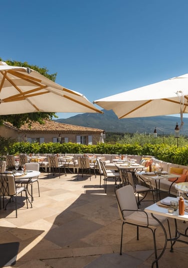 Perché à Crillon-le-Brave, avec une vue splendide sur le Mont Ventoux, La Table du Ventoux célèbre la Provence dans un cadre d’exception.