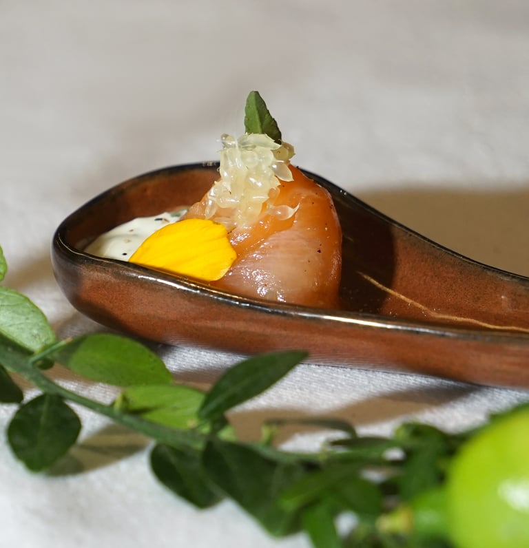 Saumon Gravlax au Citron Caviar Vert et Crème Isigny aux Herbes